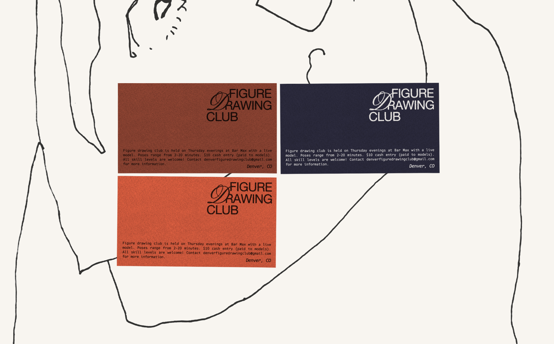 Visual identity for the Figure Drawing Club in Denver, Colorado.